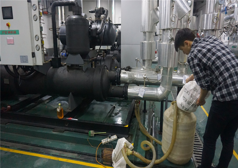 3、對于現(xiàn)場組裝的機組或在接近工況極限下運行的機組,在累計運行100小時后要更換冷凍油;